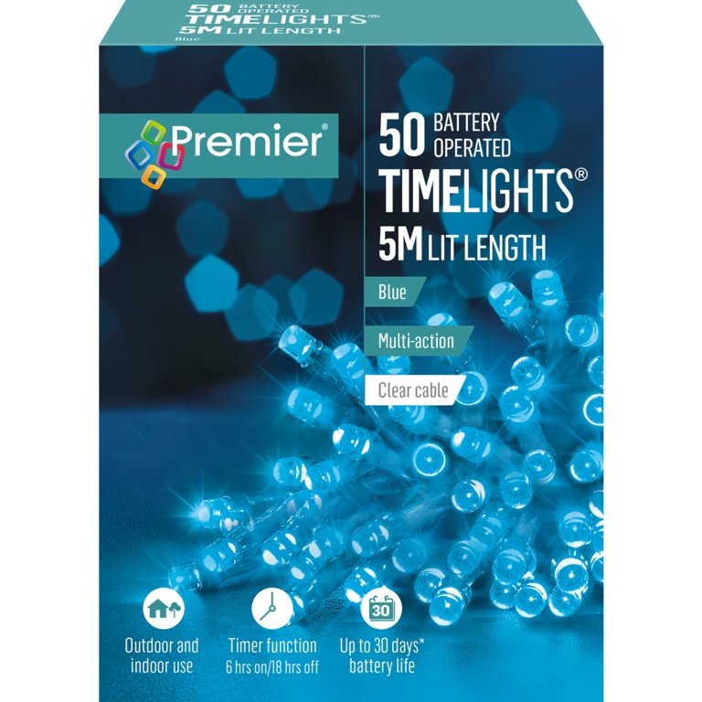 Premier Blue /Clear Cable Multi Action 50 LED Battery Operated TIMELIGHTSâ„¢
