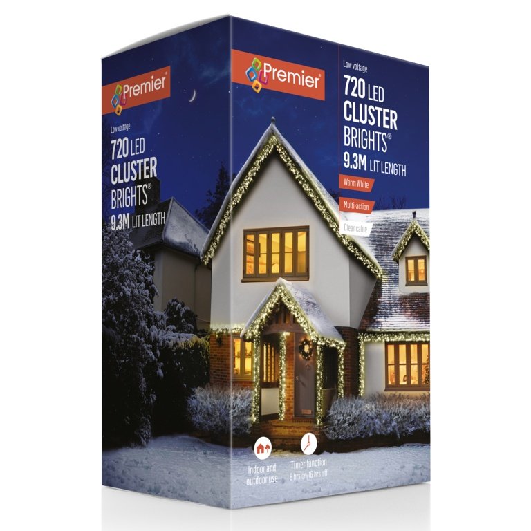 Premier Warm White /Clear Cable 720 LED Multi Action Cluster Brights With Time