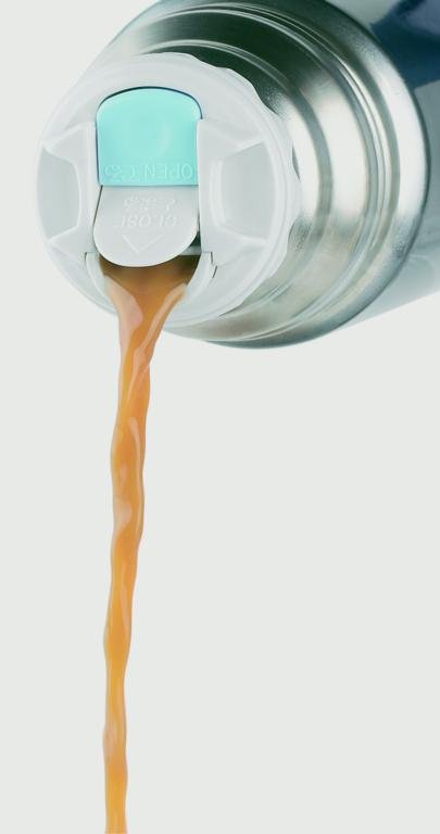 Thermos vacuum insulation technology for maximum temperature retention, hot or cold|Keeps hot for 12 hours and cold for 24 hours|Durable stainless steel interior and exterior|Innovative push button stopper for easy pouring|Cool to the touch with hot liquids, sweat-proof with cold